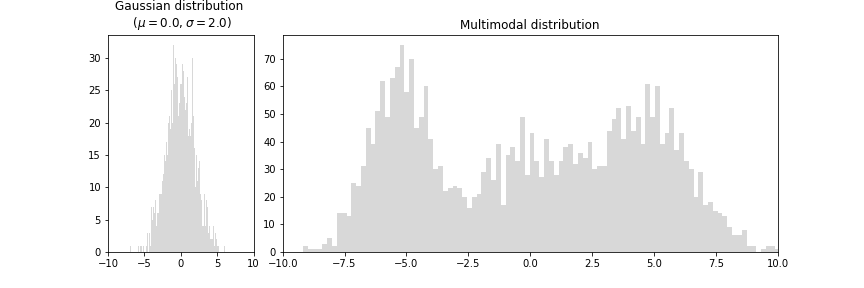 But, why learn distribution when we can directly predict the target values? Well, in most regression problems we assume the distribution of the target value to follow Gaussian distribution (left plot) but in reality, many problems have multiple modalities (right plot) that cannot be solved by directly predicting target values.